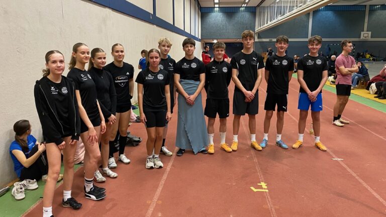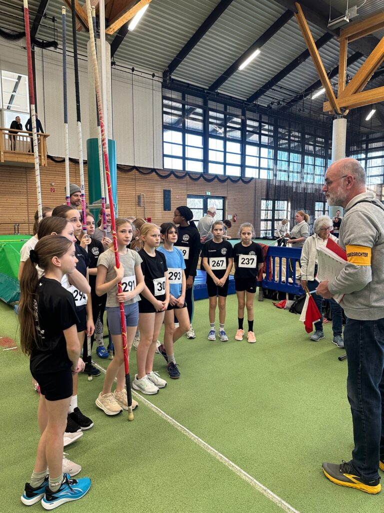 Die Überraschung war die 13-jährige Hanna Mellies. Im 60m-Lauf siegte sie nicht nur in ihrem Vorlauf unter 30 Mädchen in 8,45s. Im Finale wurde sie dann nur von Mandys Omega Tarabella aus Wattenscheid geschlagen, wobei sie mit 8,43s ihre persönliche Bestleistung noch einmal toppen konnte. Die Stabis sahnten außerdem ab: In W13 dominierte Lotta Gühne mit 2,50 vor Merle Driedger mit 2,20m, in M13 konnte sich Maximilian Büxe mit 1,70 gleich auf Platz 2 setzen, und in M13 gelang dies ebenso Johann Viehrig mit 2,20m. Emilia Krüger kam in W13 gleich zweimal unter die besten Acht: 4. Platz im Kugelstoß mit 8 ,68m, 6. Platz im Hochsprung mit 1,40m. Dort konnten sich auch Ida Fiebig in W12 mit einem Kugelstoß von 5,98m (nachdem sie sich im 6om-Lauf mit 9,04s ins Finale gesprintet hatte) und Jonas Wolf in M12 mit einem Weitsprung von 4,14m platzieren. Eine Energieleistung lieferte Mika Ecsedy in M12 ab: Nach einer langwierigen Krankheit verbesserte er seine Bestzeit über 800m auf nunmehr 2:40,88min.