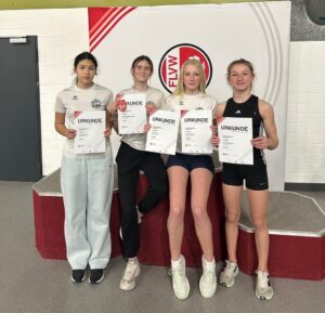 Einen Tag nach ihrem starken Auftritt über die Hürden in 9,50s und Platz 3 sicherte sich Emma Bösebeck-Singh in der W14 den Westfalenmeistertitel im Stabhochsprung. Mit übersprungenen 3,40 m zeigte sie eine solide Leistung. Den Vizetitel in dieser Altersklasse gewann Leila Nurullina mit 2,40 m. In der W15 bestätigte Lale Luise Mesch ihre erst eine Woche zuvor aufgestellte persönliche Bestleistung von 3,40 m mit Platz 3. Die hohe Leistungsdichte in Westfalen wird durch einen Blick auf die deutsche Bestenliste deutlich: Die drei Podestplätze der Westfalenmeisterschaften entsprechen aktuell auch den deutschlandweiten Platzierungen. Auf Rang vier folgte Marie Niemann, die mit 3,00 m erstmals die „magische“ Drei-Meter-Marke, die zugleich die Norm für die Deutschen U16-Meisterschaften im Juli bedeutet. Greta Spieß überzeugte in drei Disziplinen: Im Weitsprung mit 5,11m und im Kugelstoß mit 11,15m wurde sie erst jeweils im letzten Durchgang noch auf den zweiten und dritten Platz verwiesen. Mit der 4x200m-Staffel der Stg Minden/Lippe-Süd wurde sie außerdem – zusammen mit Aley Imeraj – Fünfte in einer großen Konkurrenz. In der mU18 wird Adrian Mertens immer besser. Im Weitsprung steigerte er sich auf 6,04m und Platz 3. Im. Weitsprung M15 überraschte Mittelstreckler Paul Striewe die Konkurrenz mit 5,38m und Platz 5. Richtig Pech hatte Ben Krome in M15. Da steigert er sich im Kugelstoß auf herausragende 13,60m, wird jedoch im allerletzten Stoß des Wettbewerbs noch von Raffael Hesse übertroffen, der seine Bestleistung um 70m steigern konnte. Dafür freute sich Ben über neue Bestleistungen im Stabhochsprung mit 2,90m auf Platz 4 und 9,86s über die 60mHürden auf Platz 8. Super zwei Newcomer über die Hürden in ihren erst zweiten Hürdenlauf überhaupt: Lukas Hülsmann behauptet sich mit 10,15s in diesem starken M15 -Feld, und Jakob Schlieker gelang der Sprung in den Endlauf M14, den er mit 10,43s (und fast einer Sekunde Steigerung) auf Platz 7 beenden konnte. Mit Problemen im Oberschenkel steigerte sich Wolf Kröger auf 9,29s über die 60mHürden und 2,90m im Stabhochsprung, musste jedoch im Hochsprung mit 1,61m aufhören – das machten aber drei fünfte Plätze aus.