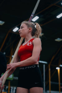 Ein besonderer Moment für Lale Luise Mesch: Die erst 15–jährige Stabhochspringerin der LG Lippe–